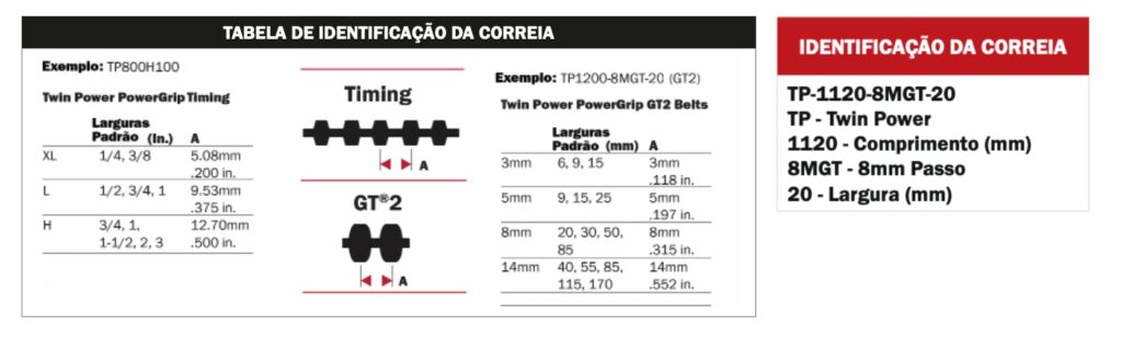Correias PowerGrip GT2 Twin Power possui dentes dos dois lados, de modo a fornecer sincronismo em ambas superfícies de condução, e podem transmitir 100% da máxima capacidade nominal em qualquer um dos lados da correia. Elas são ideais para aplicações do tipo serpentina, que requerem rotações em sentido reverso ou sincronizações de eixos movidos.