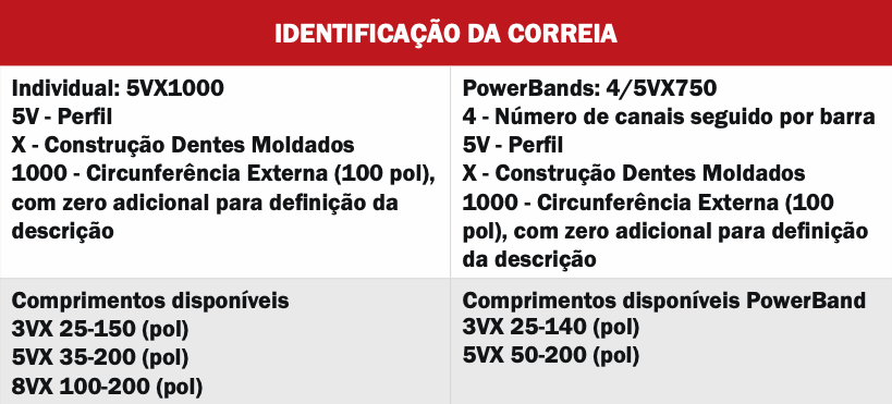 - Recomendado para uso em todos os acionamentos por correia em V de seção estreita para serviços industriais pesados.