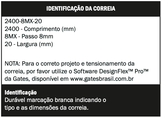 - Ideal para substituição de outras correias sincronizadoras de borracha de elevada força.